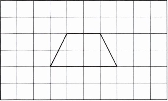 补全后的图形:在方格纸中,以已知梯形的上底和下底为基础,向左补全另一个相同大小的梯形,使整个图形成为一个大的梯形。