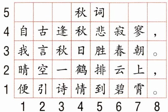(2) 诗中 3 个“秋”字的位置用数对表示分别是( , )、( , )和( , )。