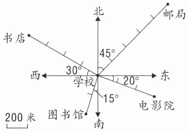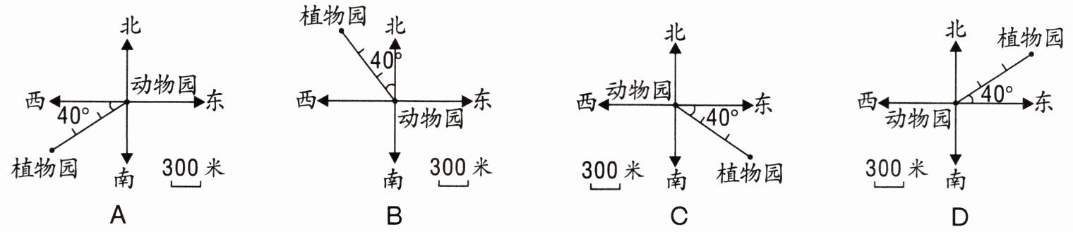 (3)植物园在动物园的东偏北 $40^{\circ}$ 方向 $900$ m 处,下面表示正确的是(