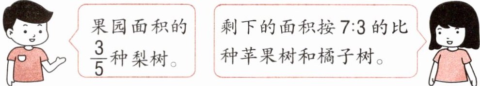 4. 一个面积是 $3000m^{2}$ 的果园。梨树、苹果树、橘子树的种植面积各是多少平方米?