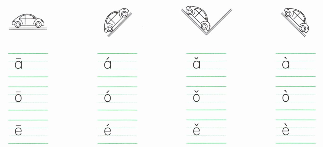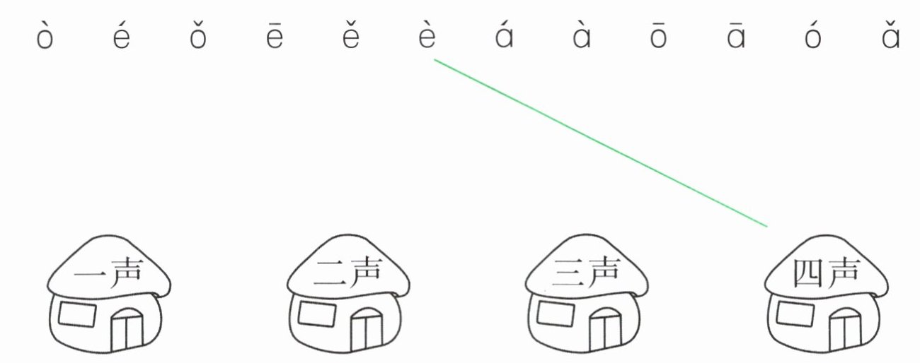 一声连ē、ō、ā;二声连é、á、ó;三声连ǒ、ě、ǎ;四声连ò、è、à。