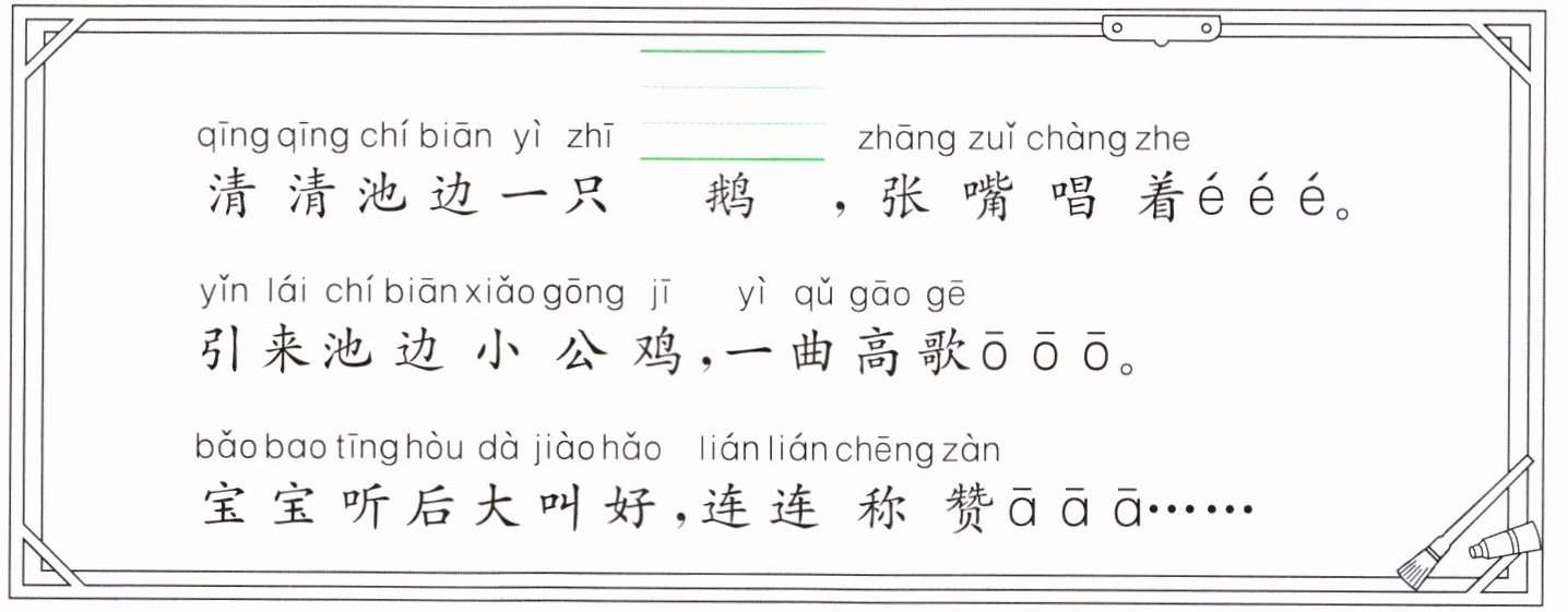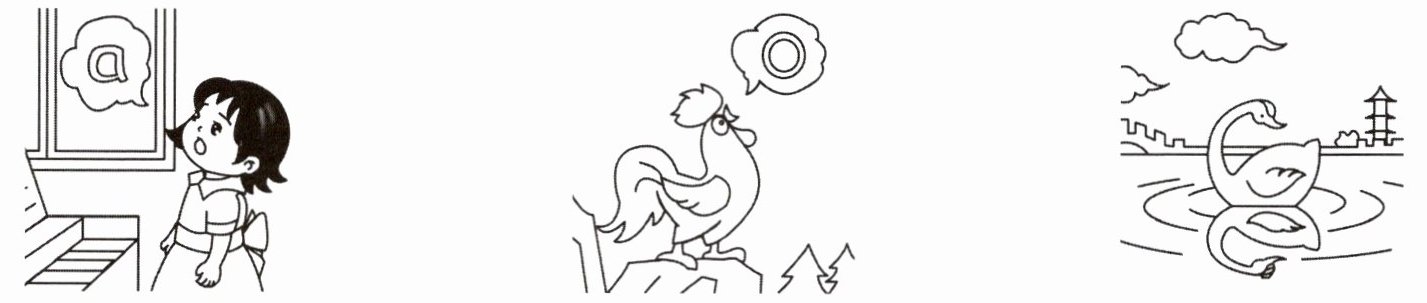 三、找一找图中的ɑ、o、e藏在哪里,给它们涂上你喜欢的颜色。