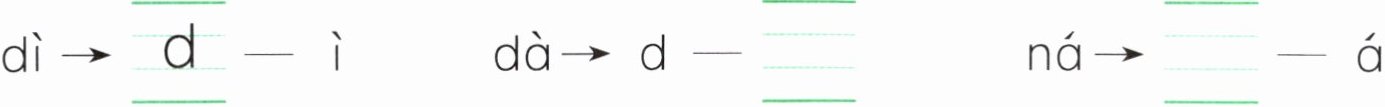 $\mathrm{d}ì\to \underline{\mathrm{d}}-\mathrm{i}$ $\mathrm{d}à\to \mathrm{d}-\underline{\mathrm{}}$ $\mathrm{n}á\to \underline{\mathrm{}}-\mathrm{á}$