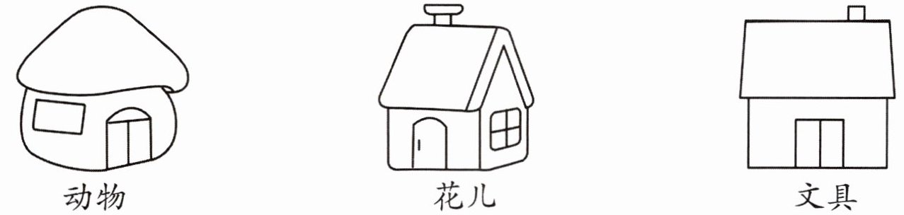动物:①④⑨ 花儿:③⑥⑧ 文具:②⑤⑦