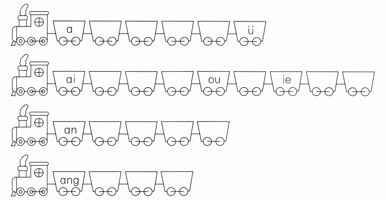 第一行:o e i u;第二行:ei ui ao iu üe er;第三行:en in un ün;第四行:eng ing ong