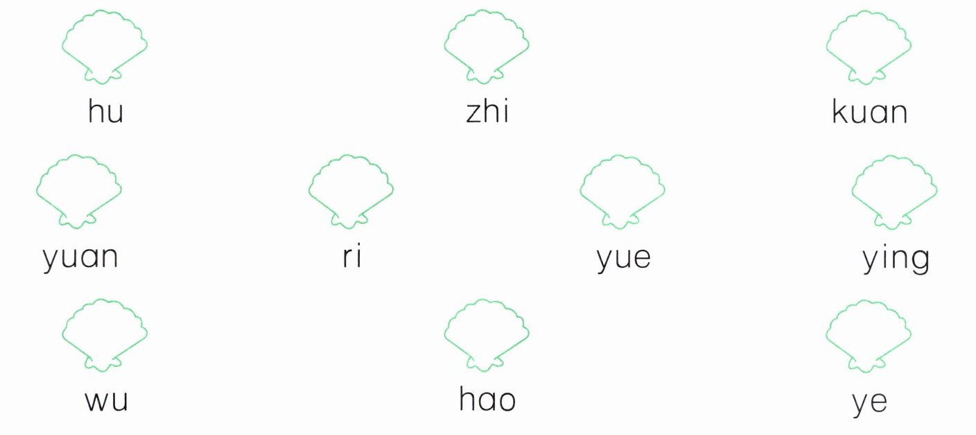 二、我能把整体认读音节上的贝壳涂成黄色。