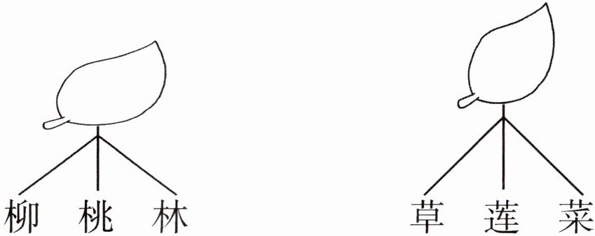 五、找出每组汉字中相同的部分,写在叶子上,再填一填。