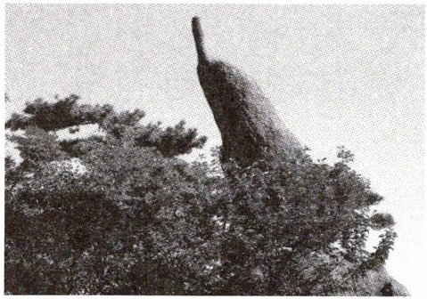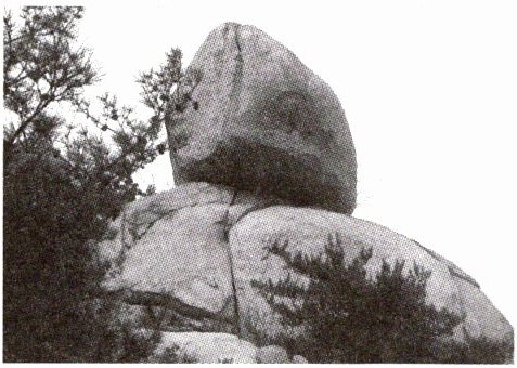 山顶的巨石好像仙桃,不知是哪位仙人遗落在此处的寿礼。 那巨石真像一只傲然挺立的孔雀。