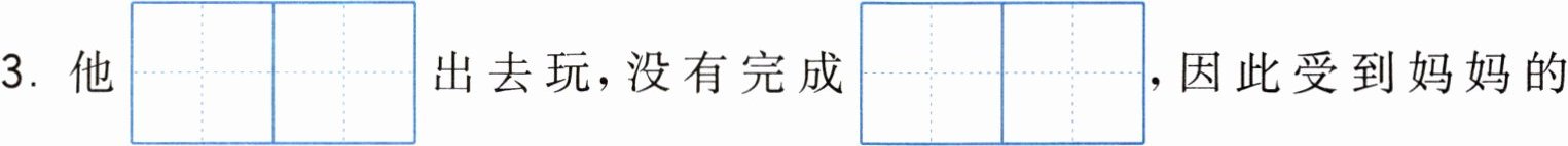 3. 他出去玩,没有完成,因此受到妈妈的。