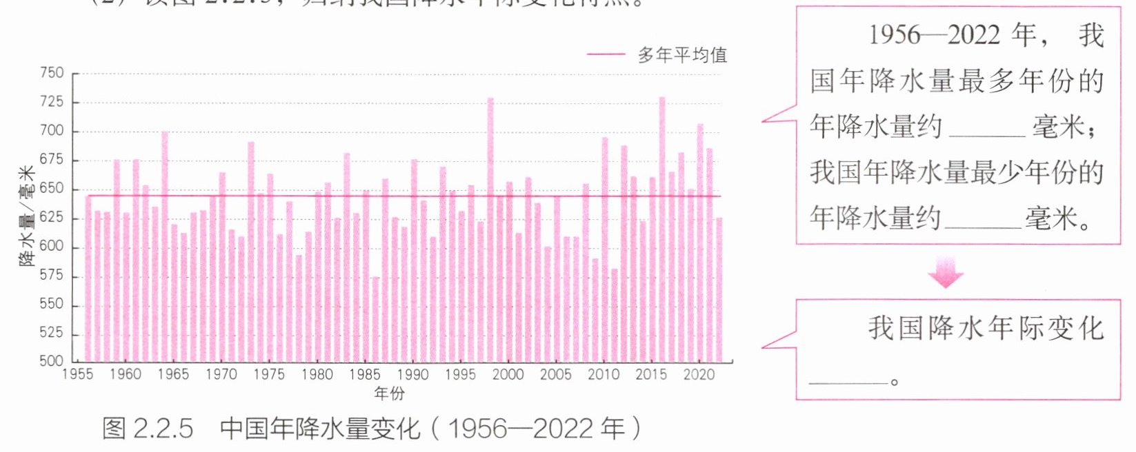 季。(2) 读图 2.2.5,归纳我国降水年际变化特点。