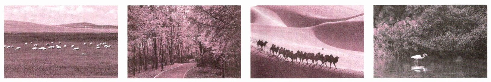 (3) 将下列景观图和年降水量范围与图 2.2.7 中对应的干湿地区连线。