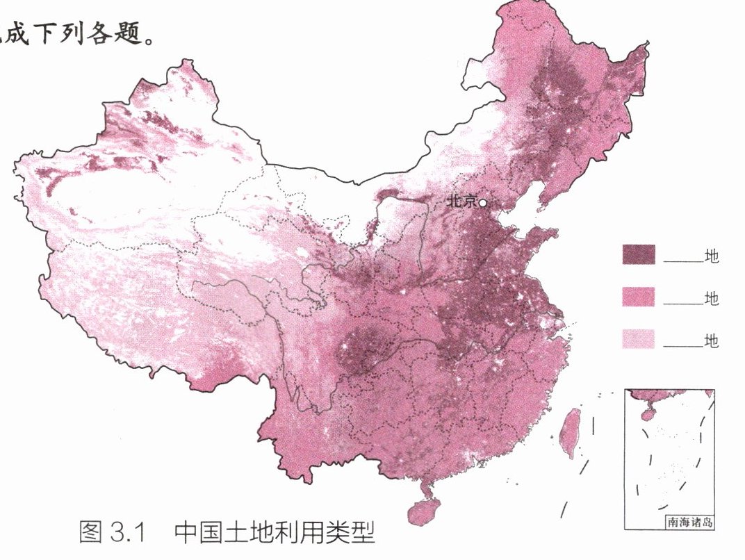 (2) 归纳我国不同利用类型的土地资源的整体分布特点。