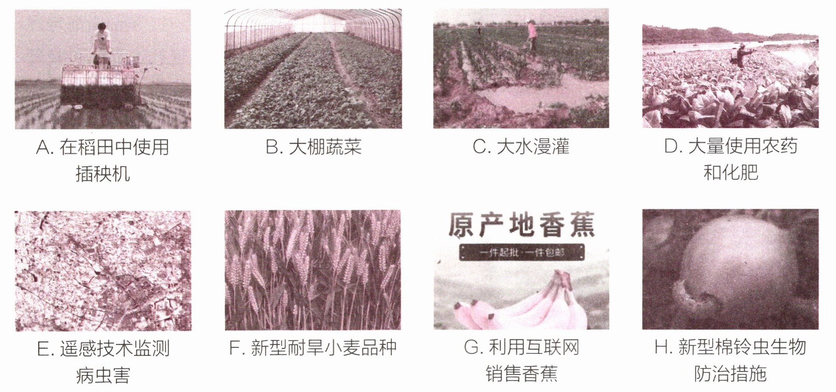 。(填字母)(2) 畅想未来。试探讨今后本村农业发展的方向。(提示:可从农产品产量、品质和生产效率等方面思考)