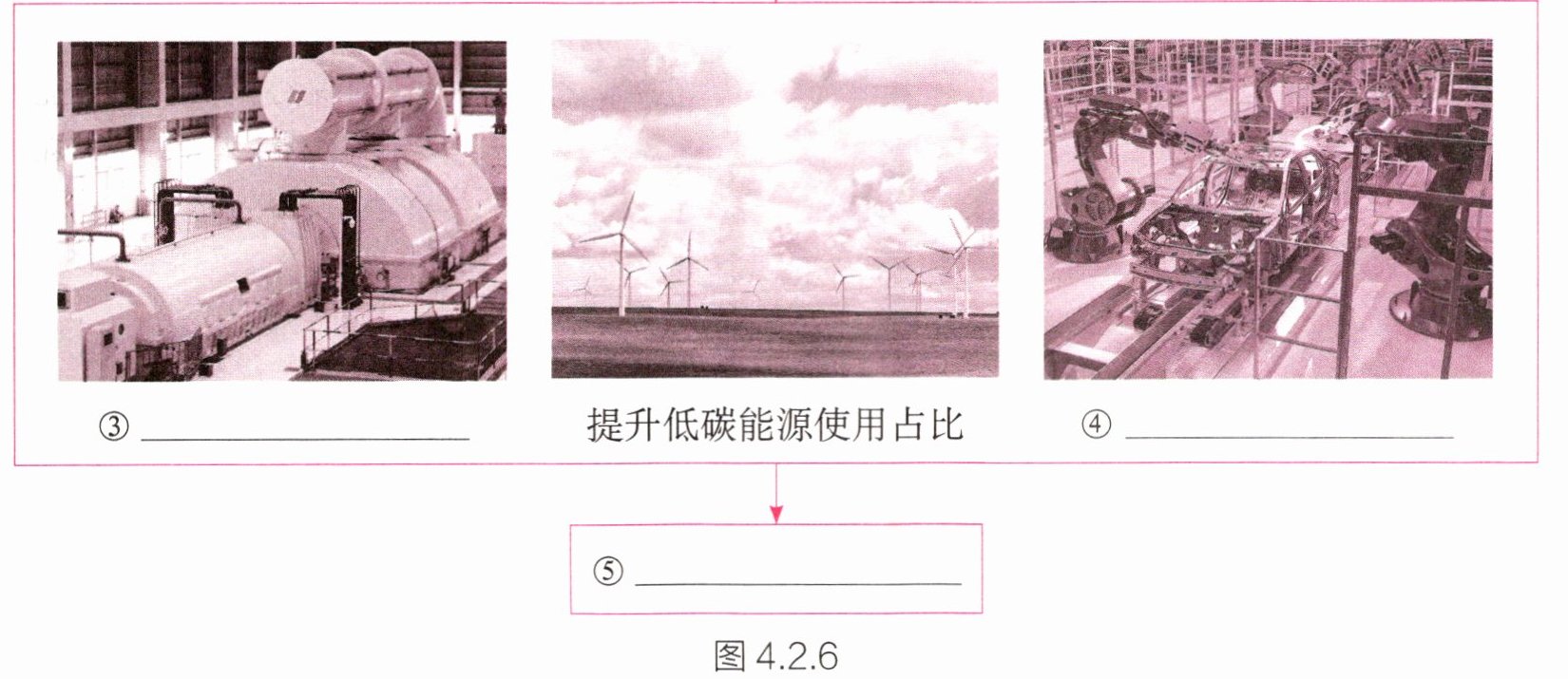 加快发展科技含量高、资源消耗低、环境污染少的低碳工业,不仅是应对全球变暖的需要,也是我国推动绿色发展,促进人与自然和谐共生的需要。读图4.2.4和图4.2.5,将下列选项的字母代号填写在对应的横线上。