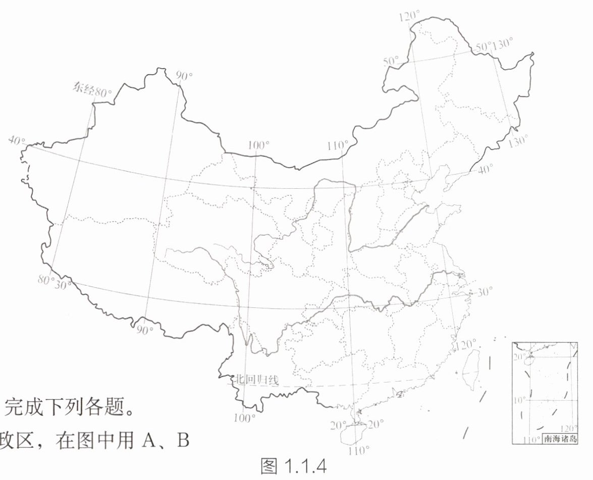 个自治区,在图中填写位于我国最西端的自治区名称。④我国有