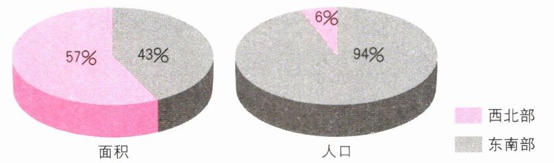 (2)人口地理分界线东南部面积占全国土地总面积的