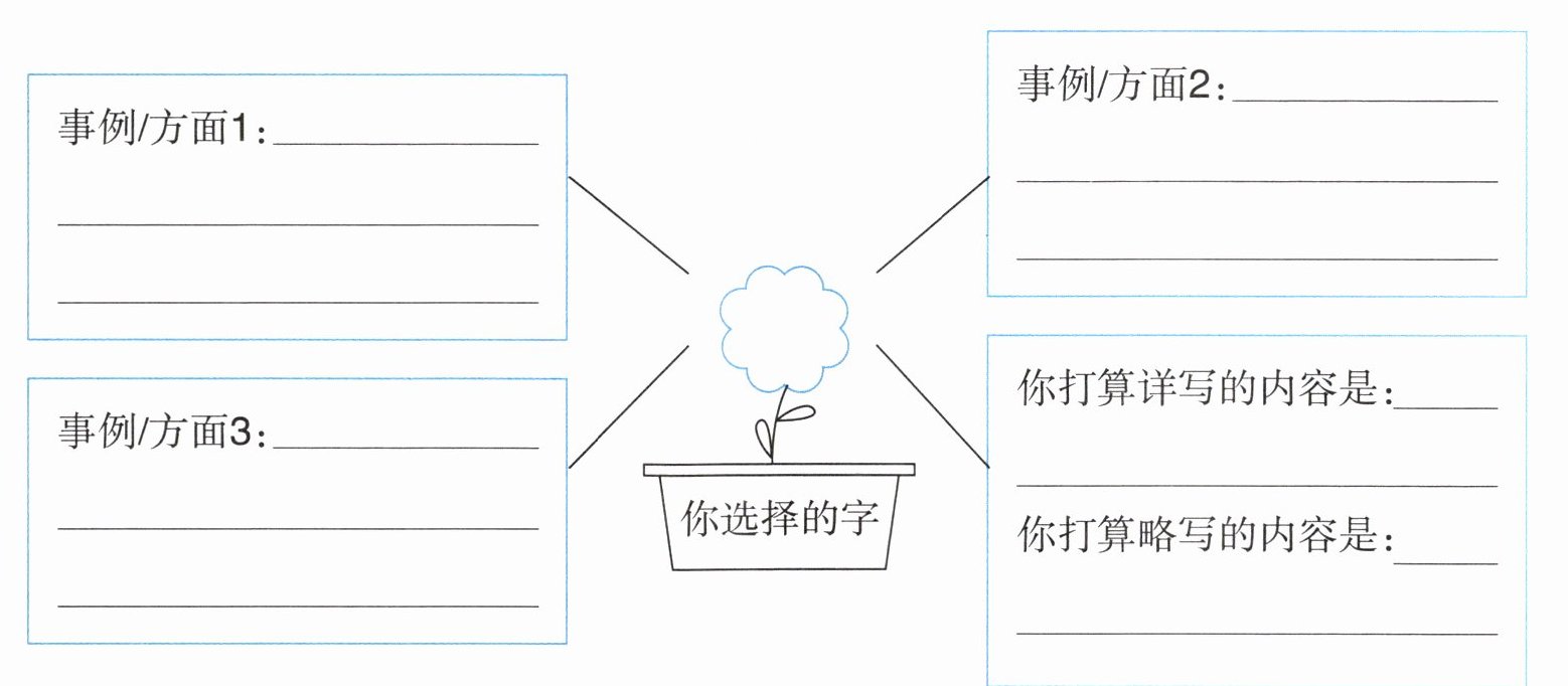 三、完成一篇完整的习作,围绕中心意思选择不同的事例或从不同的方面来写,将重要的部分写具体。