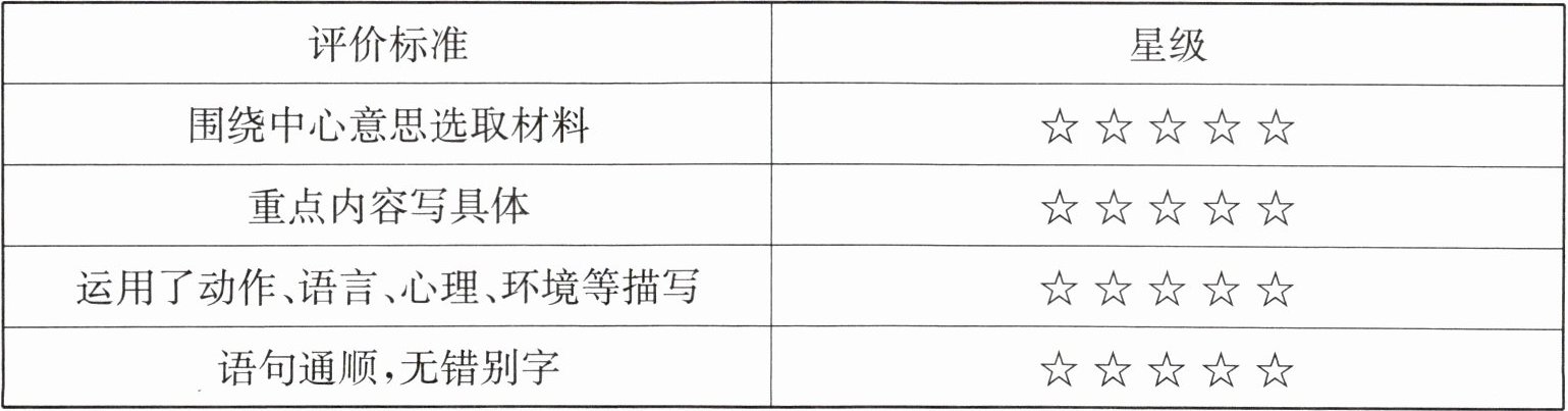 四、写好后,请同学读一读,看看他们能不能体会到你写的中心意思,并根据他们的合理评价为自己的习作评星。