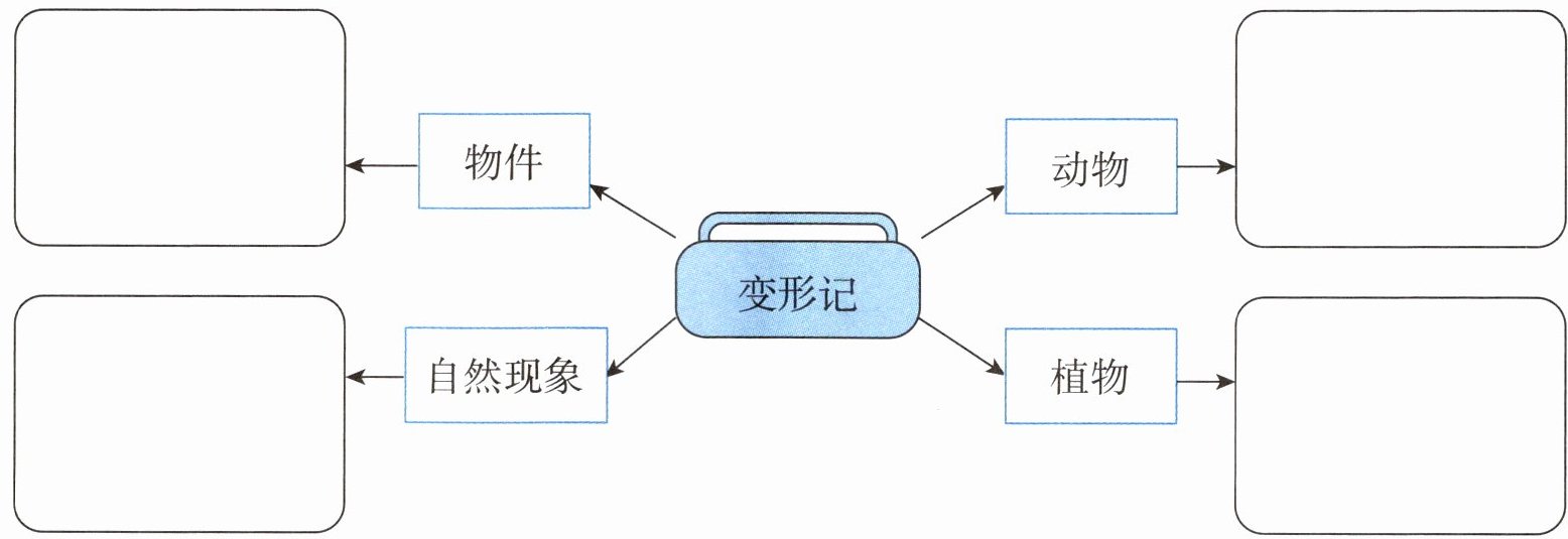 1. 如果有机会变形,你想变成什么?在下列的方框中写出来。