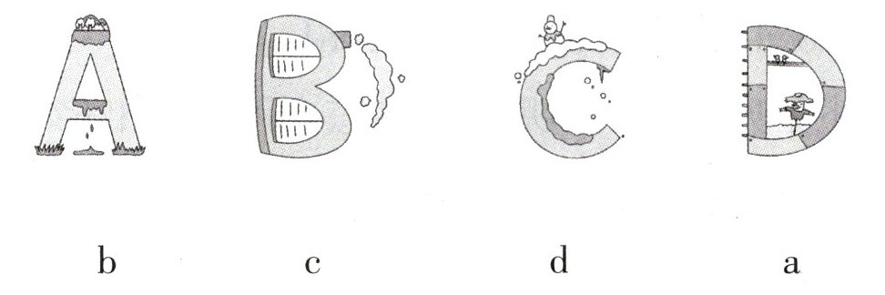 A对应b;B对应c;C对应d;D对应a ,即A-b,B-c,C-d,D-a 。