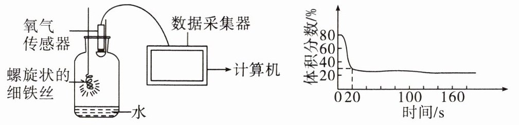 4. 某小组使用数据采集器探究“铁丝在氧气中燃烧”,集气瓶内氧气的体积分数随时间的变化关系如图所示。下列说法正确的是(