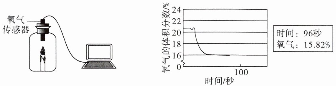 10.蜡烛点燃后用氧气传感器测瓶中氧气的体积分数,数据如图,下列说法正确的是