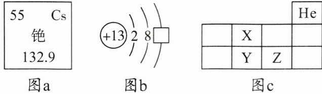 5. 图a是铯元素在元素周期表中的信息,图b是铝原子结构示意图,图c是元素周期表的一部分,X、Y、Z代表三种不同元素。