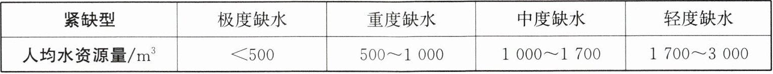 (3)分析上图并结合水资源紧缺指标表,发现属于极度缺水的地区有