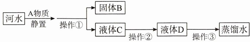 5. 小宇同学收集到一瓶浑浊的河水,他要模拟自来水厂的净水过程,最终制成蒸馏水,其实验过程如图所示。请回答以下问题。