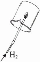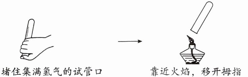 如图所示,收集一试管氢气,用拇指堵住管口,管口向下,靠近火焰,移开拇指,若
