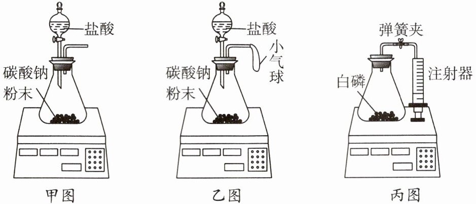 (1)${Na_{2}CO_{3} + HCl -> NaCl + H_{2}O + CO_{2}}$ 反应生成的二氧化碳逸出装置(2)浮力(3)①好 ②反应前后注射器内气体的体积