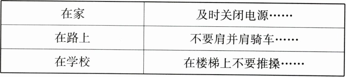 At home,we should be careful with fire and electricity. Remember to turn off the power supply and gas before leaving home. And it's dangerous to open the door for the strangers easily. On the road,we must obey the traffic rules and stop at red lights. Besides,we'd better not ride side by side or listen to music when riding. At school,we shouldn't push others on the stairs when we go up and down. Remember not to run after each other in the classroom. If there is an accident,stay calm and call 120 first as soon as possible. In short,safety must come first. If we can do all these well,we'll enjoy our life better.