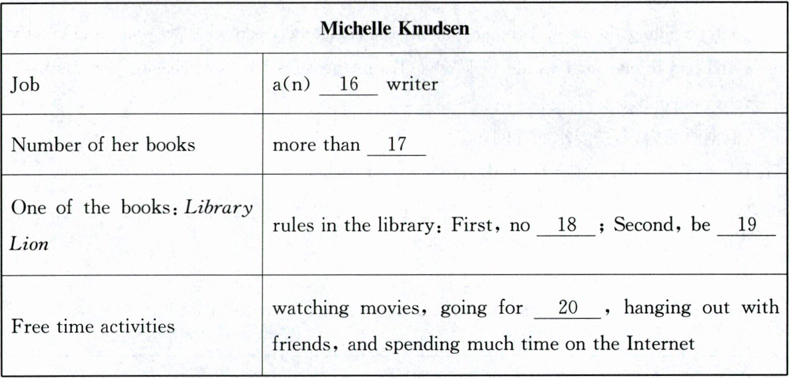 三、听短文,填信息(每空一词)。短文读三遍。(每小题 1 分,共 5 分)
