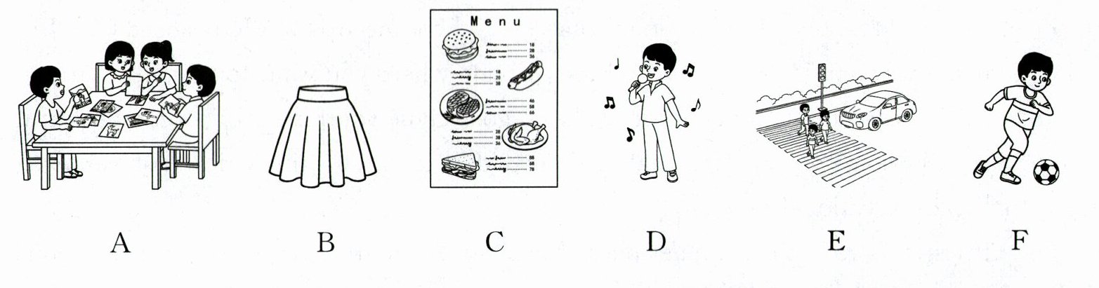 一、听句子,选图片。每个句子读两遍。(每小题 1 分,共 5 分)