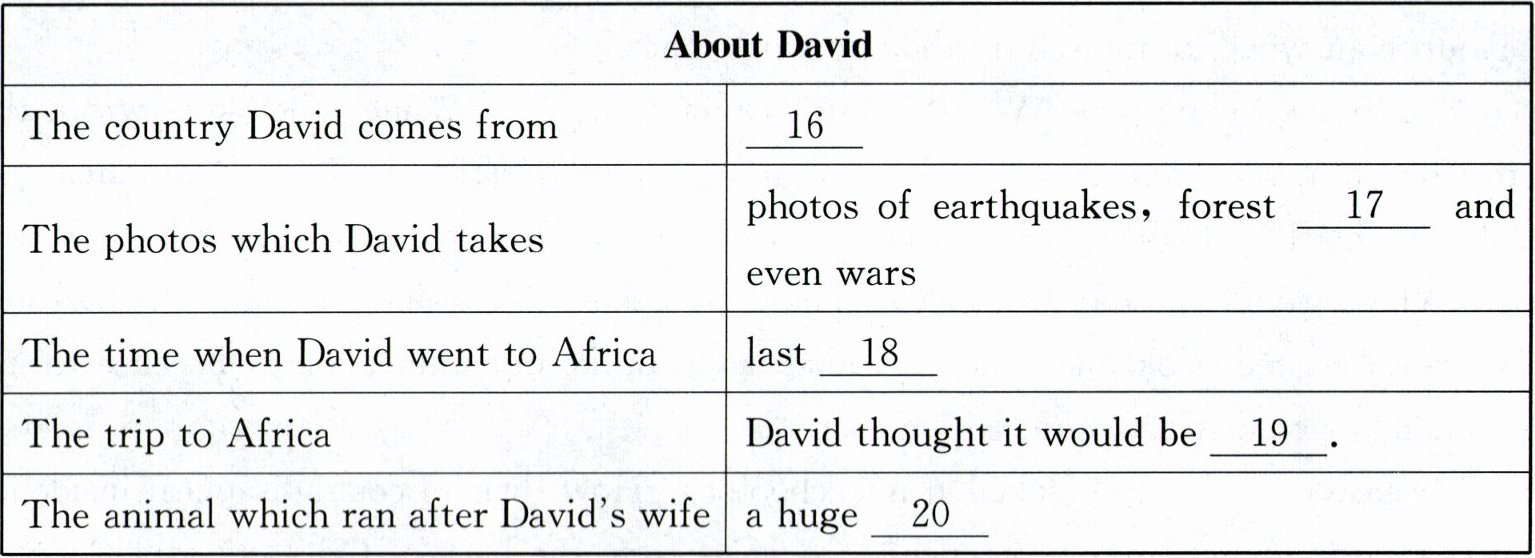 三、听短文,填信息(每空一词)。短文读三遍。(每小题 1 分,共 5 分)