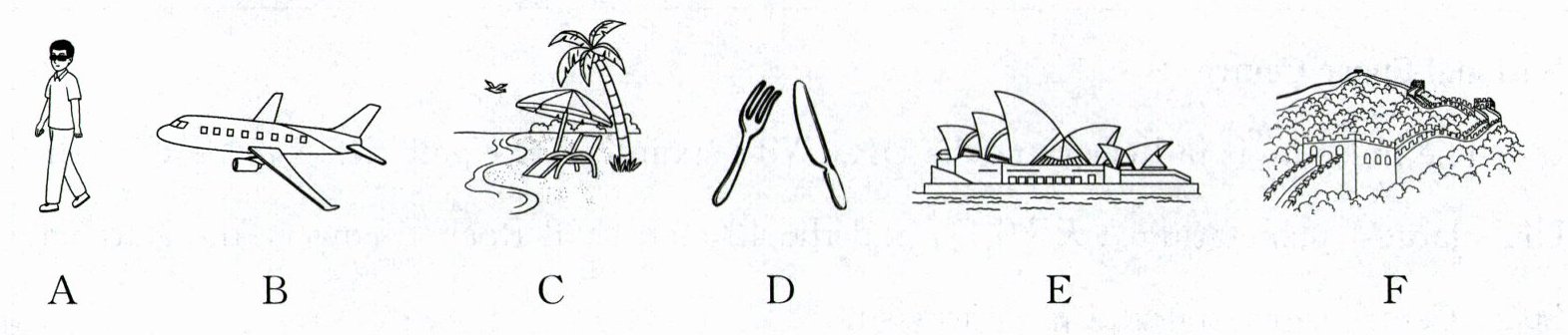 你将听到五个句子,请选出与所听句子内容相符的图片。有一幅图是多余的。每个句
