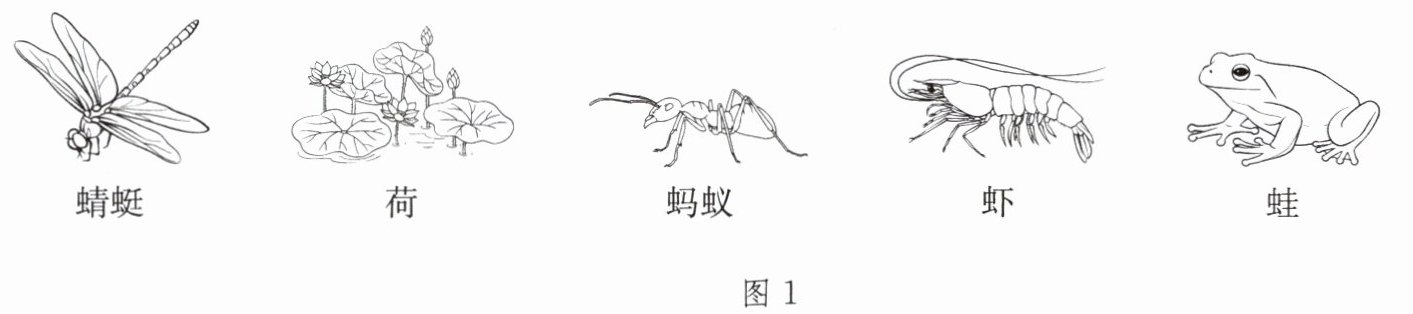 12. 图 1 是某同学在“观察周围环境中的生物”这一活动过程中绘制的五种生物。