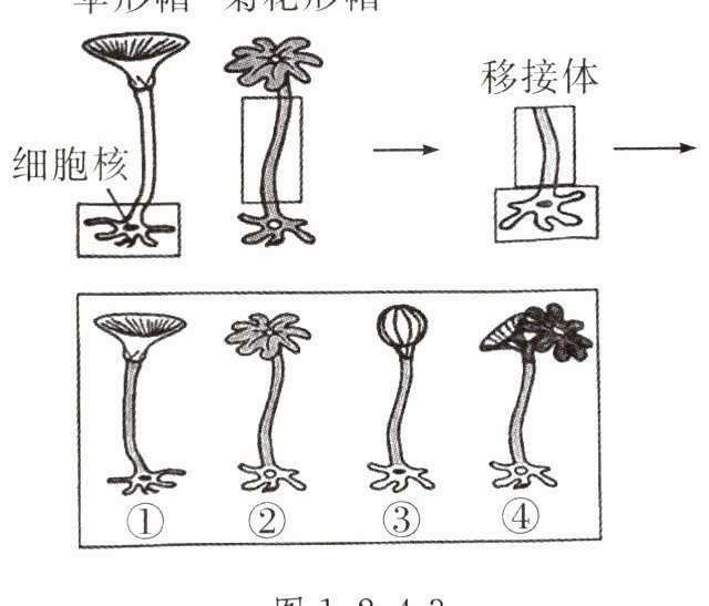 12. 细胞核是细胞的控制中心。图 1.2.4 - 3 所示的伞藻“移接体”长出的帽形应该是( )。