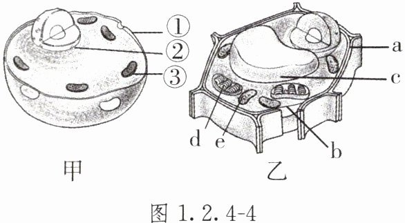 14. (2024·滨州)图 1.2.4 - 4 甲、乙分别是动物细胞、植物细胞结构模式图。下列叙述正确的是( )。