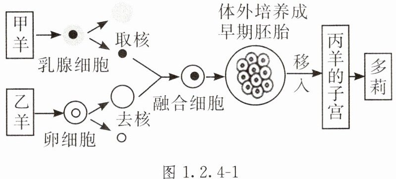 10. 图 1.2.4 - 1 表示克隆羊多莉的培育过程,下列叙述错误的是( )。