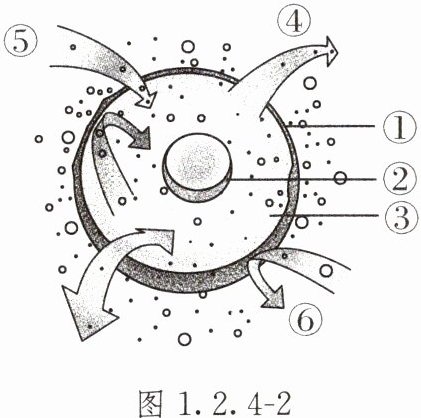 11. 图 1.2.4 - 2 表示动物细胞与外界进行物质交换的过程(①②③表示细胞的基本结构,④⑤⑥表示物质)。请据图回答下列问题。