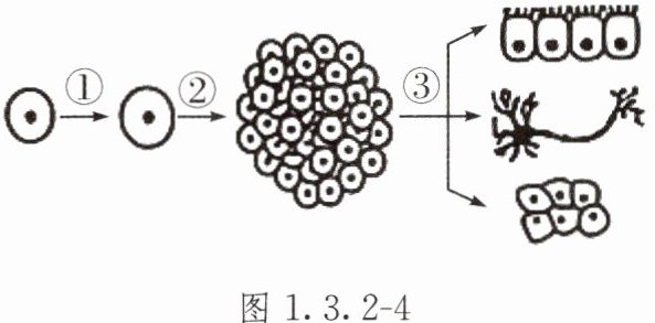 12. iPS 细胞是由体细胞诱导形成的类似胚胎干细胞的一种细胞,医学上利用其可产生多种体细胞的特点来治疗疾病(如图 1.3.2 - 4)。下列说法错误的是( )。