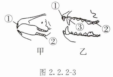 (2)图中[ ](填“甲”或“乙”)是狼的牙齿,判断的依据是______,与肉食生活相适应。