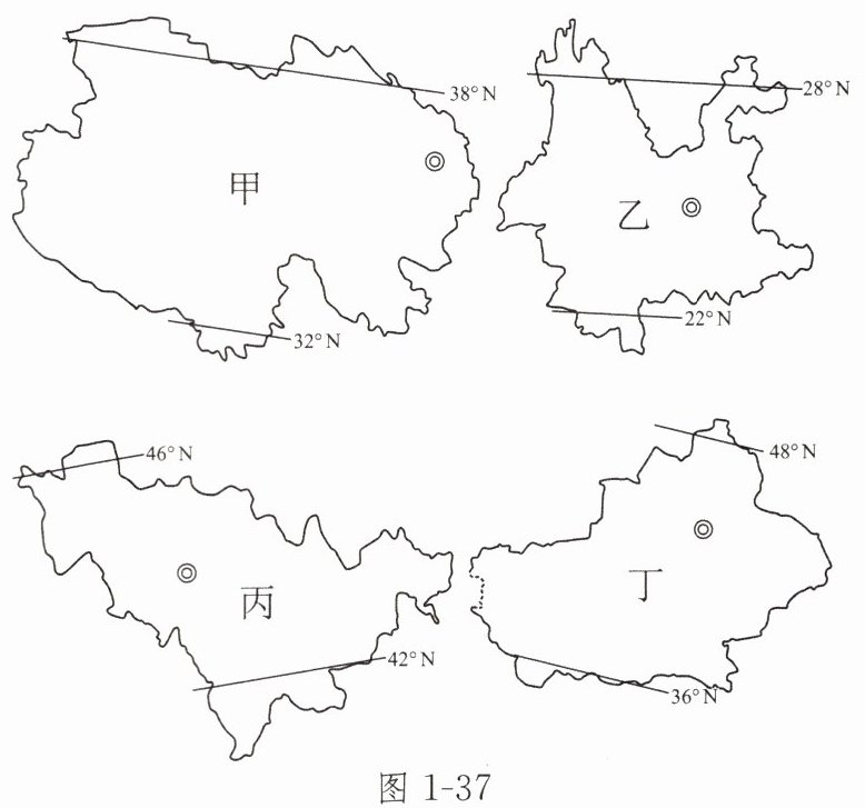 (2024年湖南郴州)泼水节是我国某民族的重大节日。图1-36为泼水节景观图,图1-37为四个省级行政区轮廓图。读图,完成1~3题。