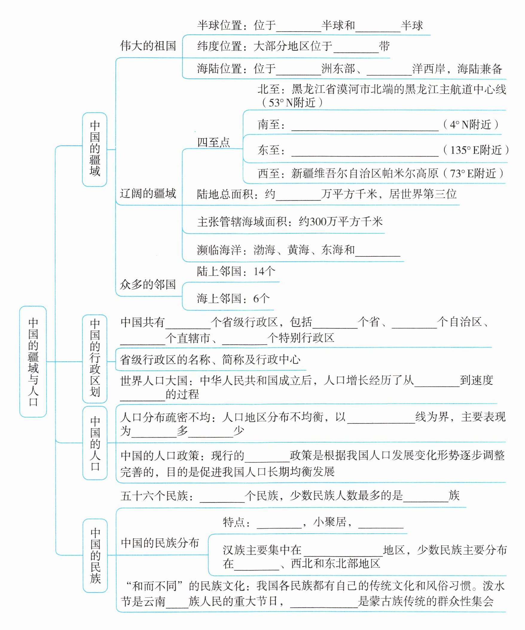 北 东 北温 亚 太平 海南省南沙群岛曾母暗沙 黑龙江省黑龙江与乌苏里江主航道中心线的汇合处 960 南海 34 23 5 4 2 迅速增长 明显减缓 黑河—腾冲 东南 西北 计划生育 56 壮 大杂居 交错居住 东部和中部 西南 傣 那达慕大会