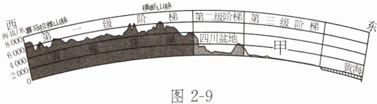 (1)图中的甲是______山脉,它是我国地势第二、第三级阶梯的分界线,该山脉西侧是______(填地形区)。