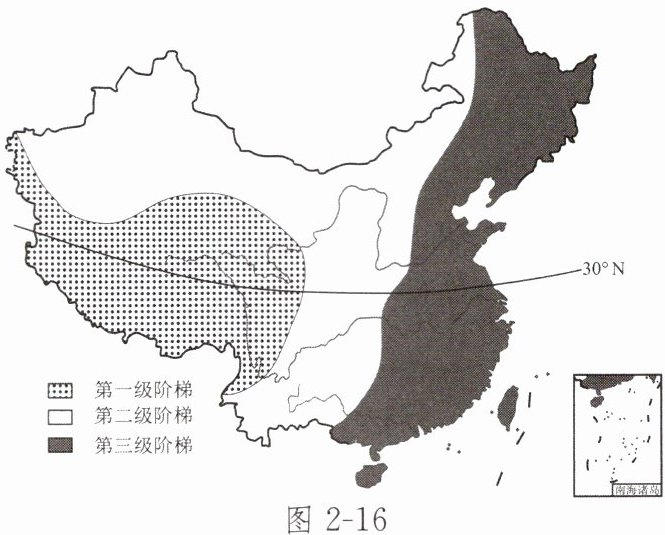 (2023年四川雅安)图2-16为中国地势三级阶梯示意图。读图,完成1~3题。