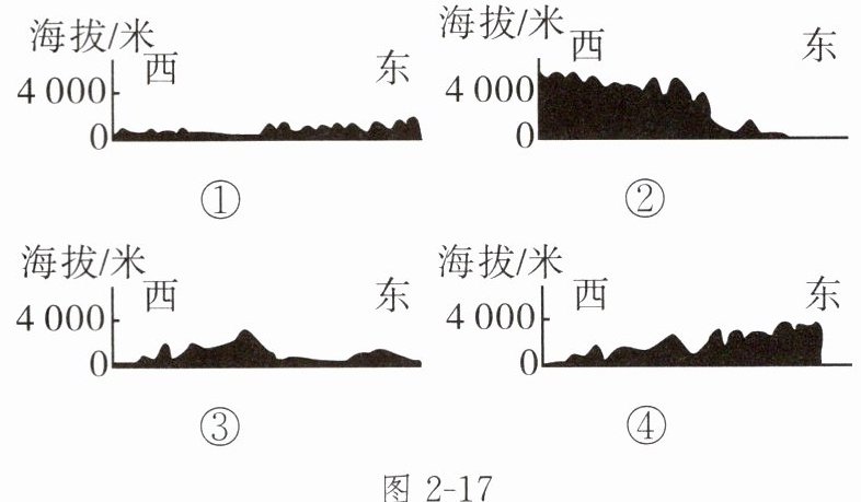1.图2-17中,能反映沿30°N我国地势起伏状况的是( )。