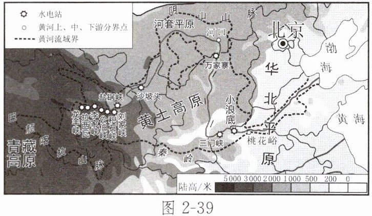 (1)概况:黄河发源于______山北麓,流经9个省级行政区,最终注入______海。黄河全长5 464千米,是中国第二长河。