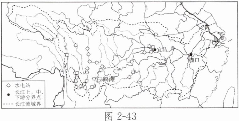 白鹤滩水电站位于金沙江下游,白鹤滩—浙江特高压工程是我国“西电东送”重点工程。图2-43为长江流域示意图。读图,完成3~5题。